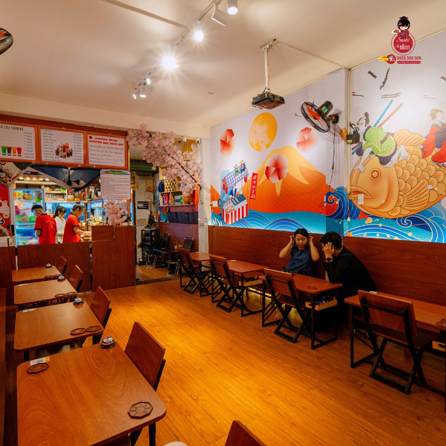 Toạ lạc tại Sài Gòn sầm uất, Sushi Ah Nhọn không chỉ đem lại cho thực khách những trải nghiệm ẩm thực độc đáo mà còn gây ấn tượng với không gian ấm cúng, gần gũi. Không gian đặc trưng với lối thiết kế truyền thống và nội thất tối giản đậm chất văn hoá của xứ sở hoa anh đào.