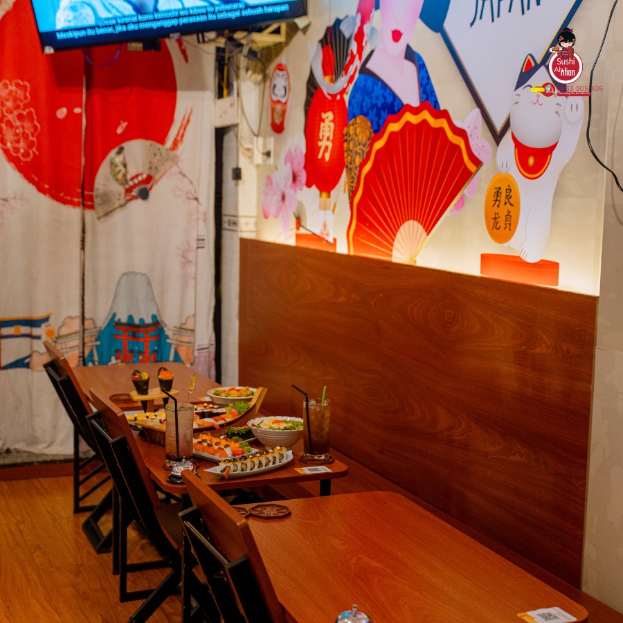 Đặc biệt, với quầy bếp mở cực lớn, thực khách có thể chiêm ngưỡng những kĩ năng điêu luyện từ đầu bếp đỉnh cao. Bên cạnh không gian đẳng cấp, Sushi Ah Nhọn còn mang tới tinh hoa ẩm thực Nhật Bản với menu Buffet Sushi tươi ngon thoả thích và món Nhật trứ danh được chế biến từ nguyên liệu tươi rói.